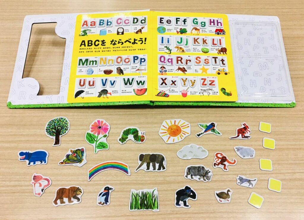 The Very Hungry Caterpilarをもっている人に一緒に使ってほしい教材が、この「はらぺこあおむしのABCマグネット」です。